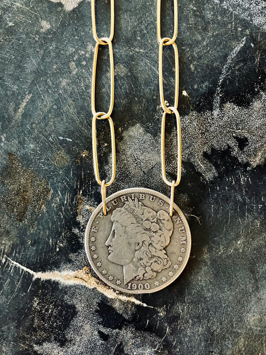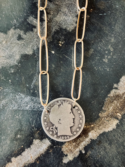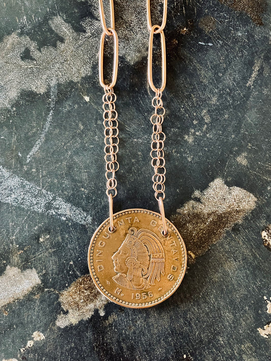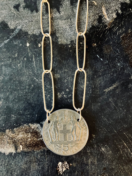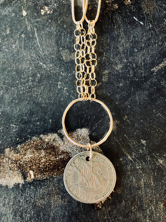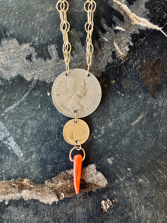 1963 United Kingdom & 1968 Uruguay Double Coin Necklace with coral
